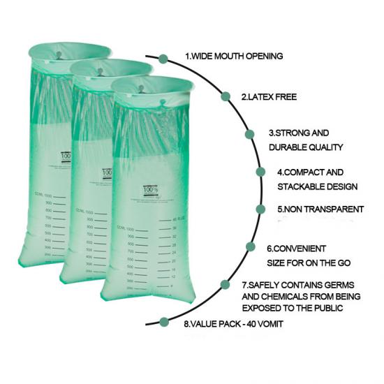 抽繩嘔吐袋專為解決嘔吐物而設計,帶有抽繩和吸水墊,處理廢物更方便,不易溢出,不易滲露。