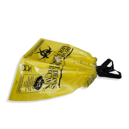 抽繩醫療垃圾袋,分為機制穿繩和手工穿繩,可定制尺寸厚度,主要用于承裝醫院,診所等公共場所的垃圾廢物,健康環保,品質有保證。