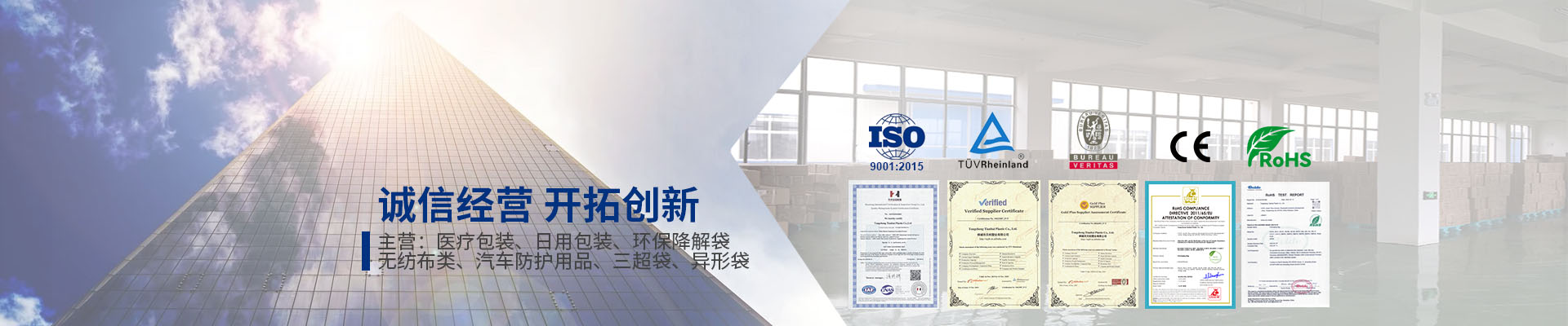目前公司生產銷售產品主要有復合袋,編織袋、背心袋、垃圾袋、異型袋、無紡布制品、熱 縮包裝、環保塑料袋、環保塑料制品、不干膠標簽、家居清潔用品等系列塑料產品。2015年公司引進并參與設計多功能制袋機數臺,致力于提供多樣化的包裝定制服務和產品,目前公司熱銷的拉鏈袋、穿繩外賣打包袋、一次性汽車防護用品、圓底袋、方底袋、三角裱花袋、醫療廢物處理袋、樣本袋、抽繩垃圾袋等等產品熱銷全球50多個國家。公司一直在投入人力和資金研發可降解產品,響應國家的環保政策,努力為保護環境奉獻力量。