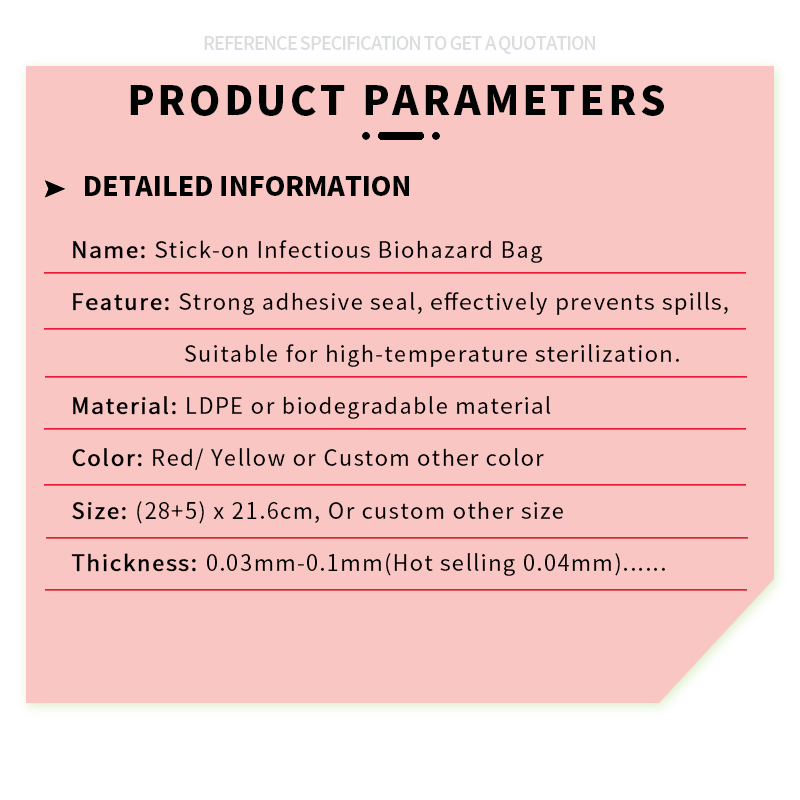 貼膠垃圾袋是一種加厚一次性環保袋,廣泛應用于醫院、車載、家庭等多場景。采用強力貼膠設計,可輕松粘貼于多種平面,使用方便。袋體加厚防漏,適用于存放醫療廢棄物、車載垃圾、家庭日常垃圾等。封口簡便,不易泄漏,安全衛生。支持定制,滿足不同需求。