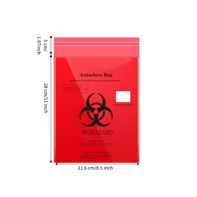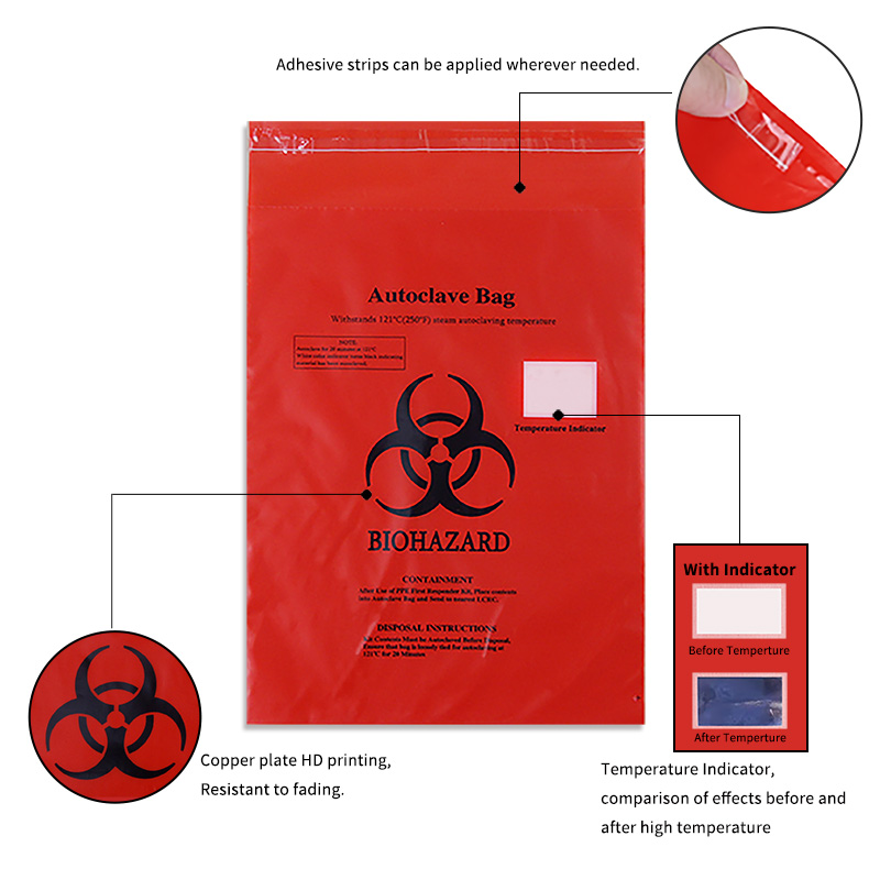 可定制醫療垃圾袋,高溫指示標在經過121-135℃高溫高壓滅菌后變灰色或者變黑,指示標尺寸和內容可按照客戶要求設計。