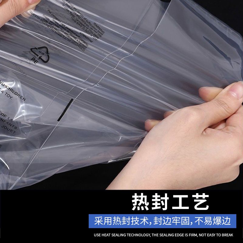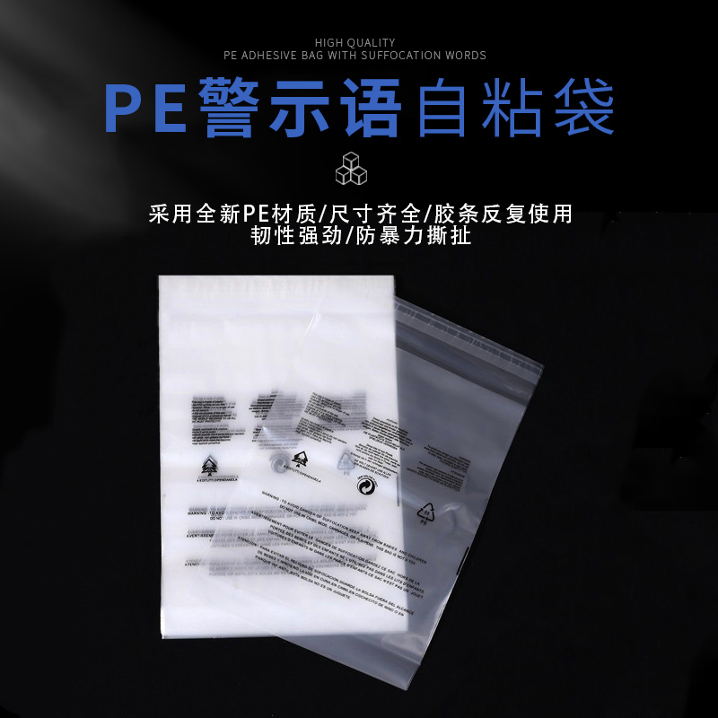 25天PE警示語貼膠袋選用PE全新材料,具有透明度高、韌性好,抗撕拉等優點。采用熱切工藝,邊緣牢固不易破,主要用于衣物服飾,化妝品,書籍等商品包裝使用。